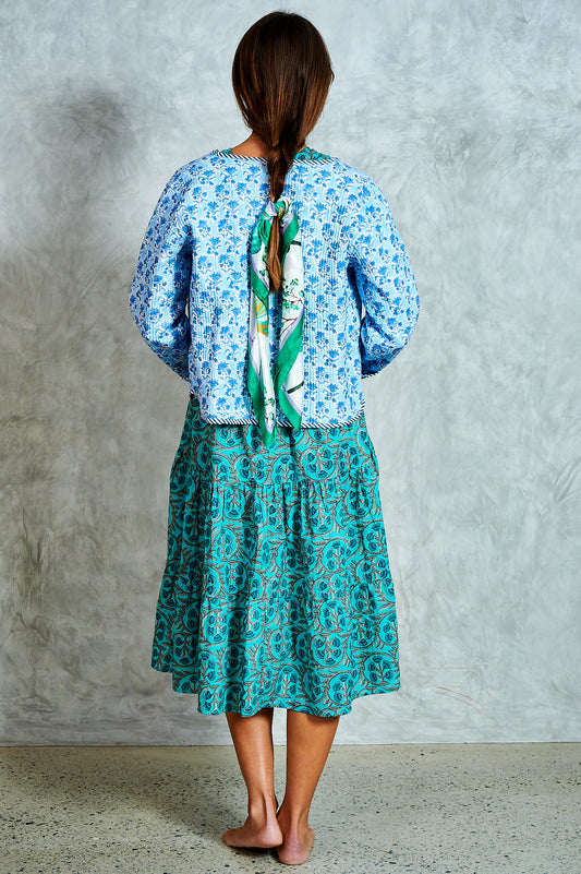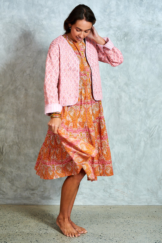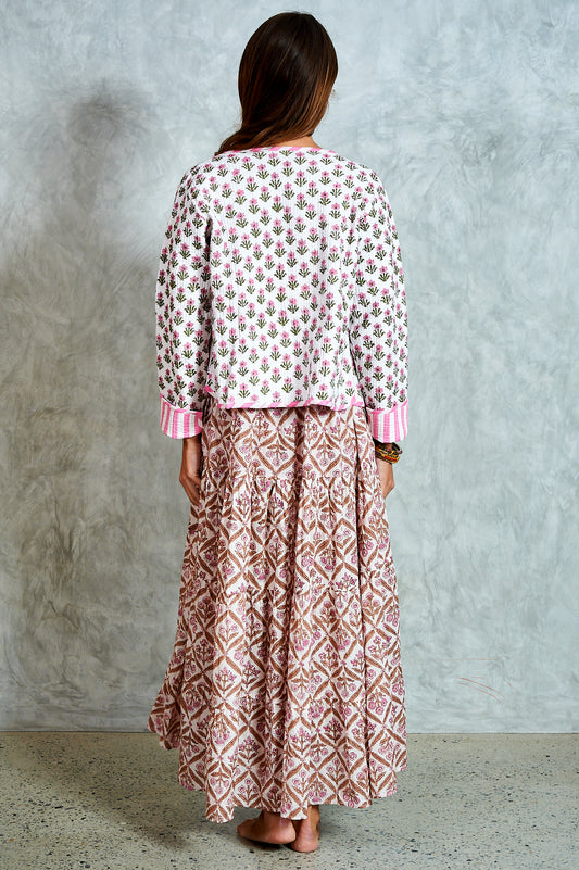 Clementine Jacket -White with Pink Floral and Candy Stripes