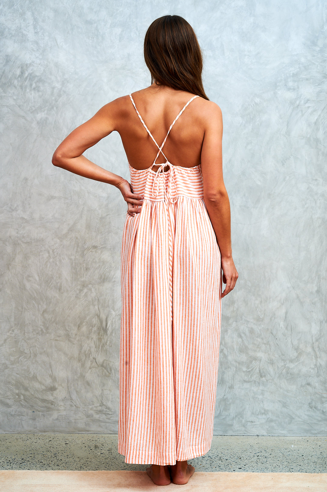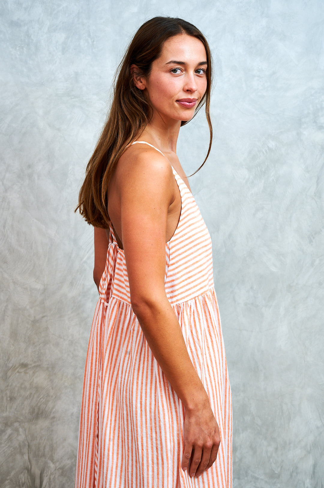 Introducing the Ella Dress – a stunning, flowing design perfect for hot summer days. With delicate thin straps and a deep back neckline, this dress features adjustable ties for a customisable, flattering fit. Ideal for any occasion, whether you're attending a garden party or a laid-back evening event.