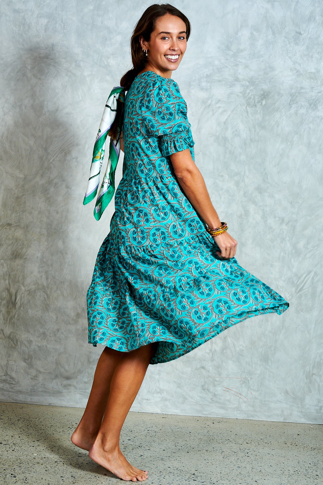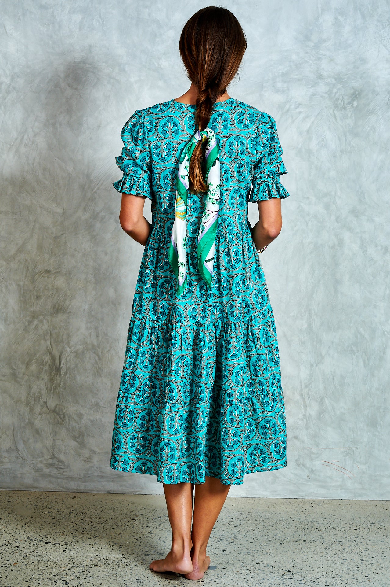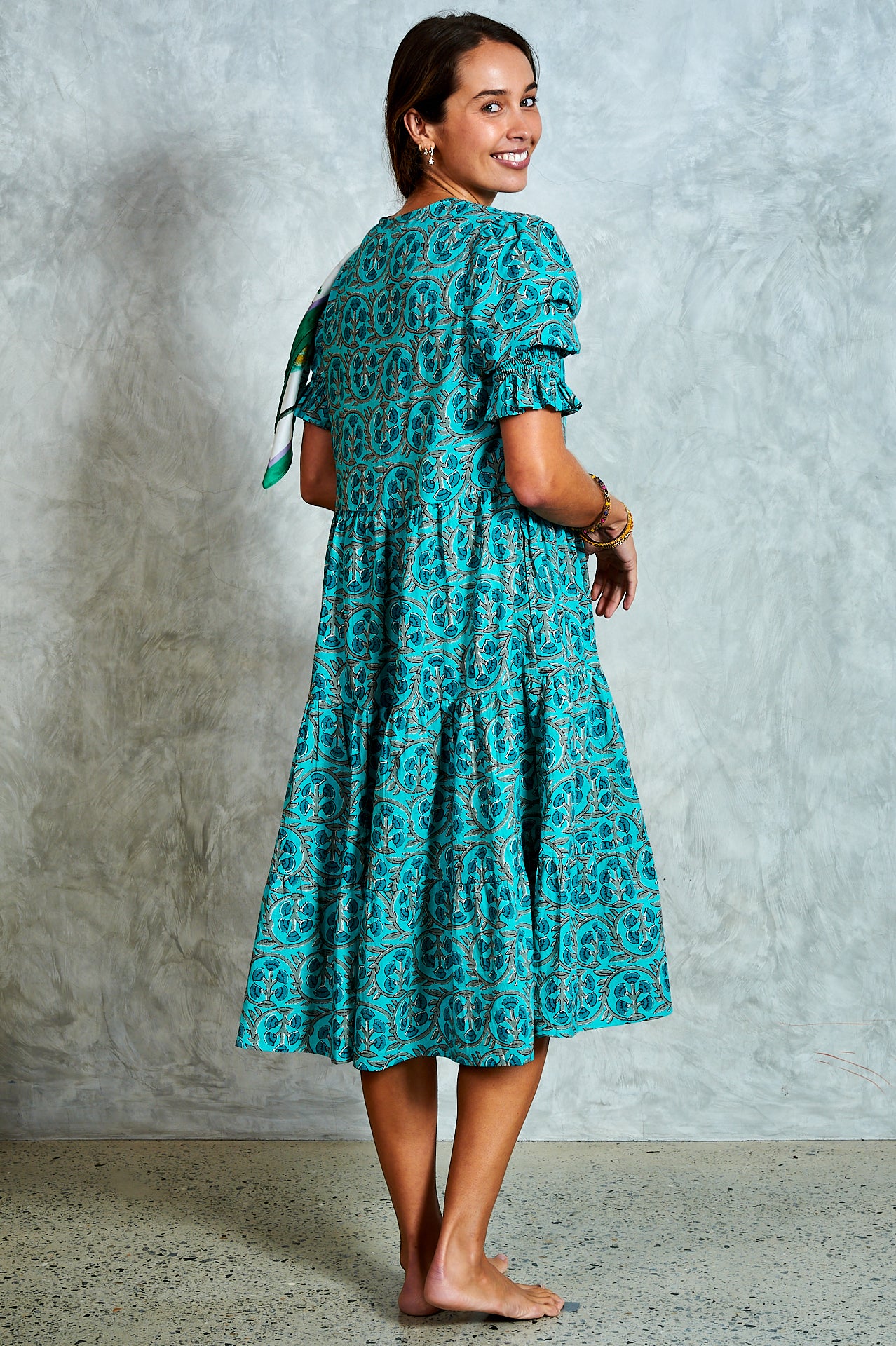 By popular demand, the much-loved Harriet now comes in a midi—meet Molly. A stunning hand block-printed cotton dress with a button-through bodice, tiered skirt, and softly puffed sleeves with shirred cuffs. Effortlessly versatile, Molly is perfect for everyday wear and easy to dress up for an evening out. Ethically made in India with love.