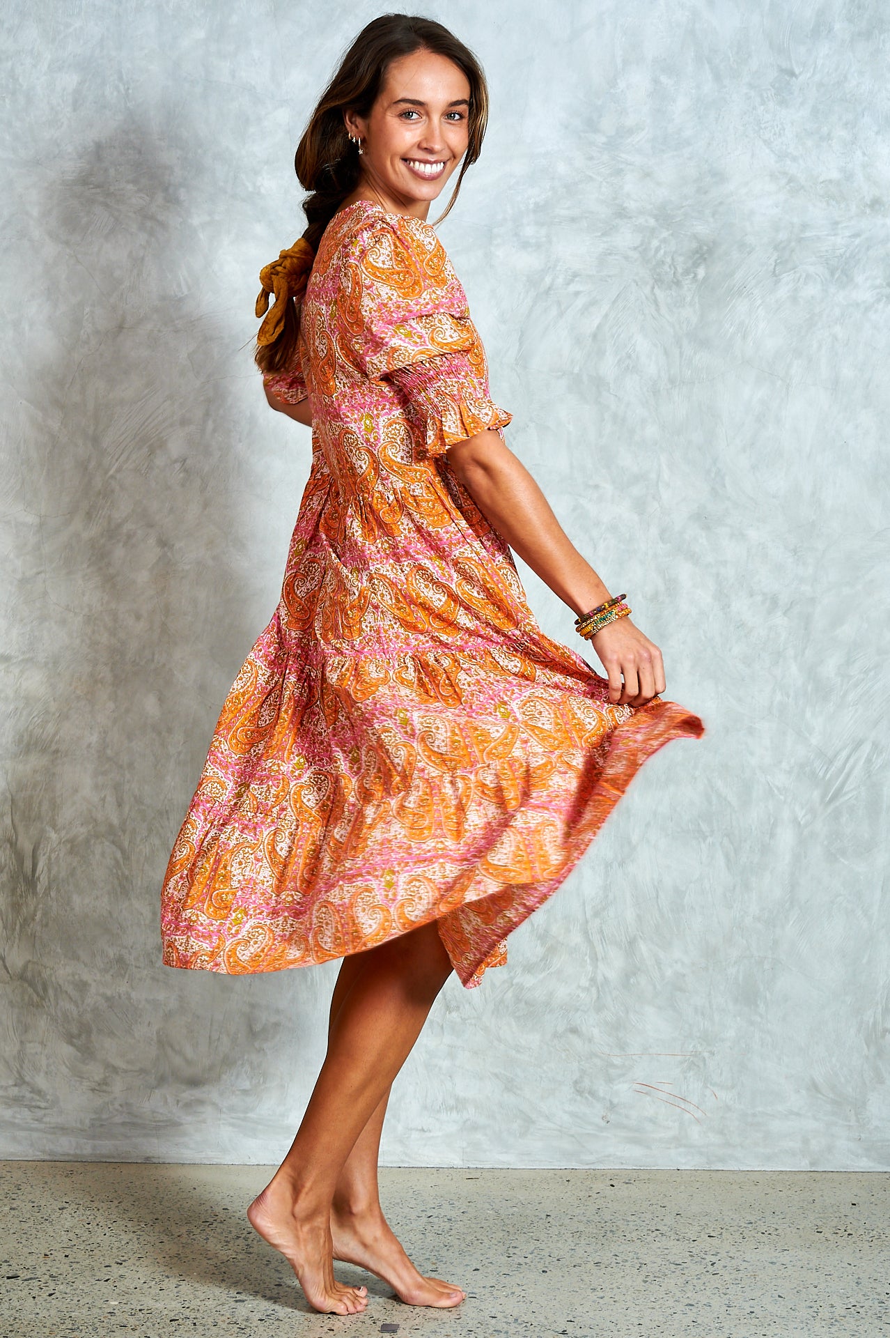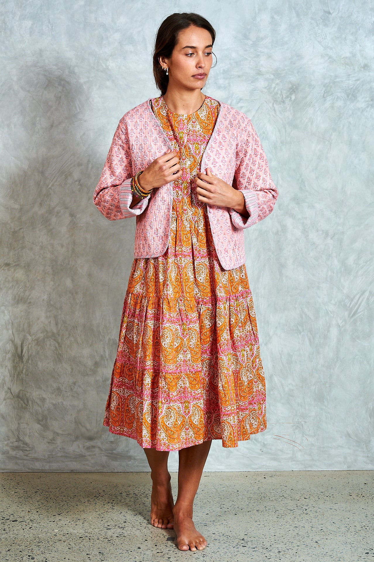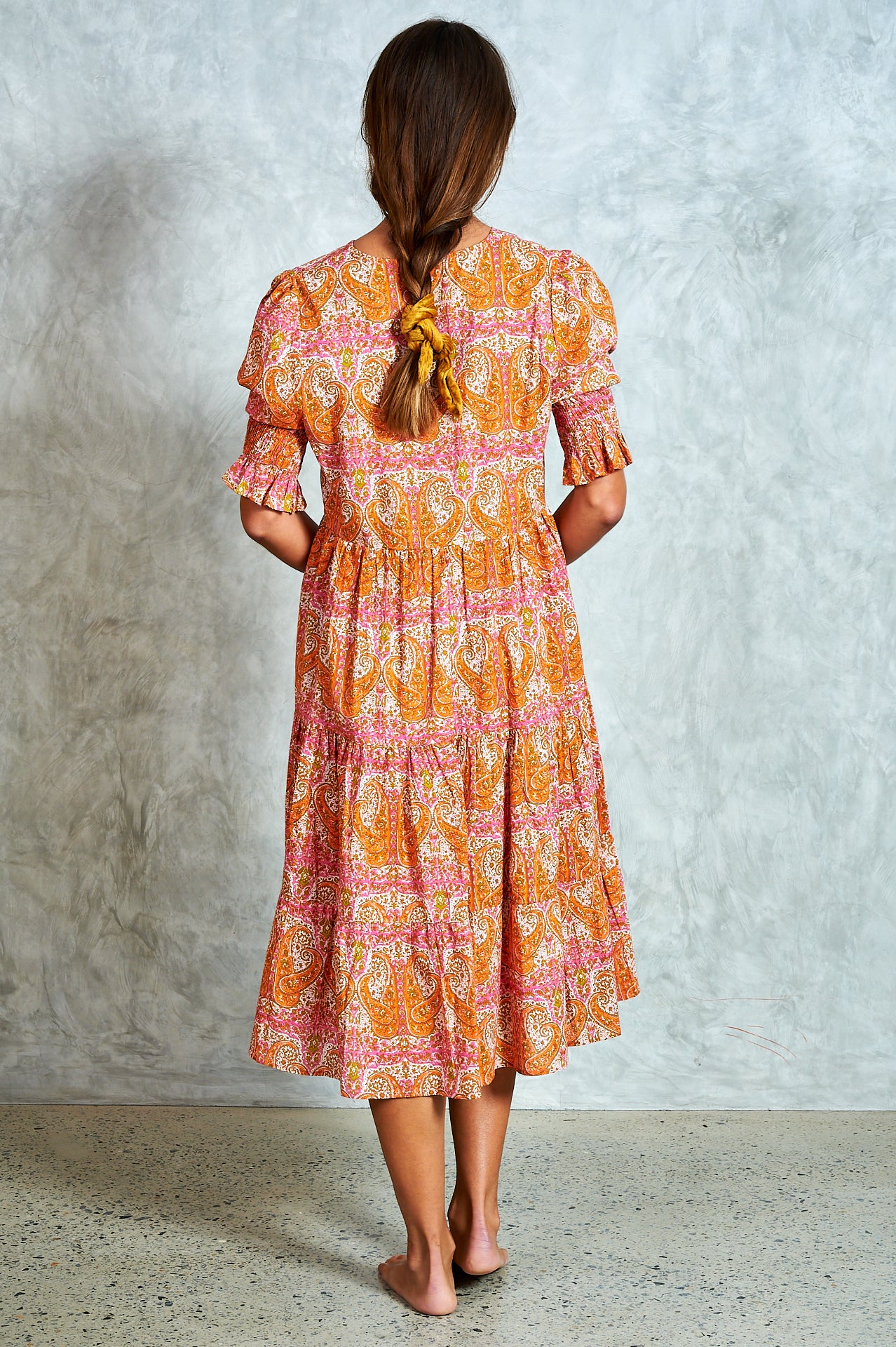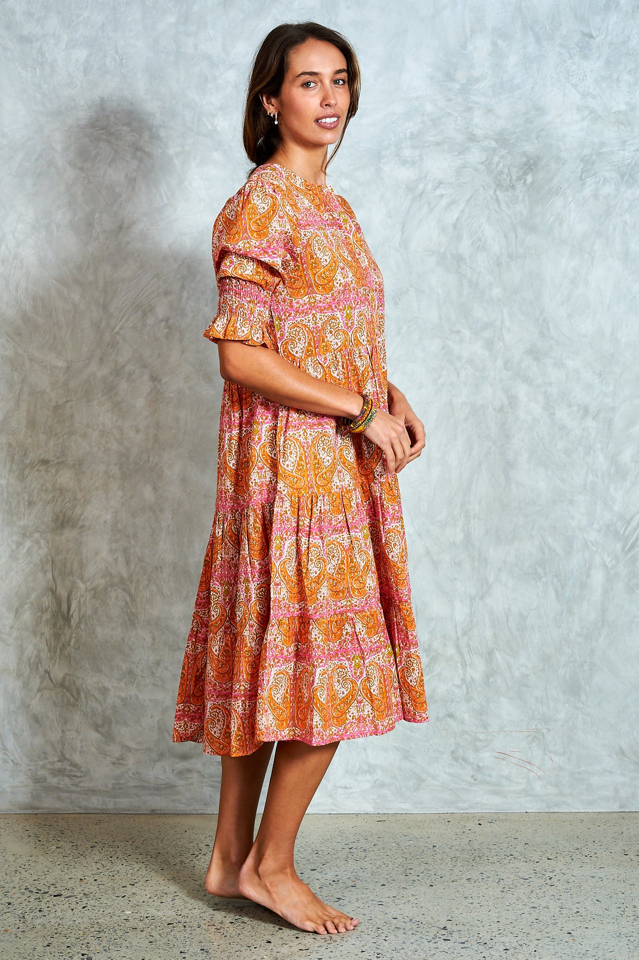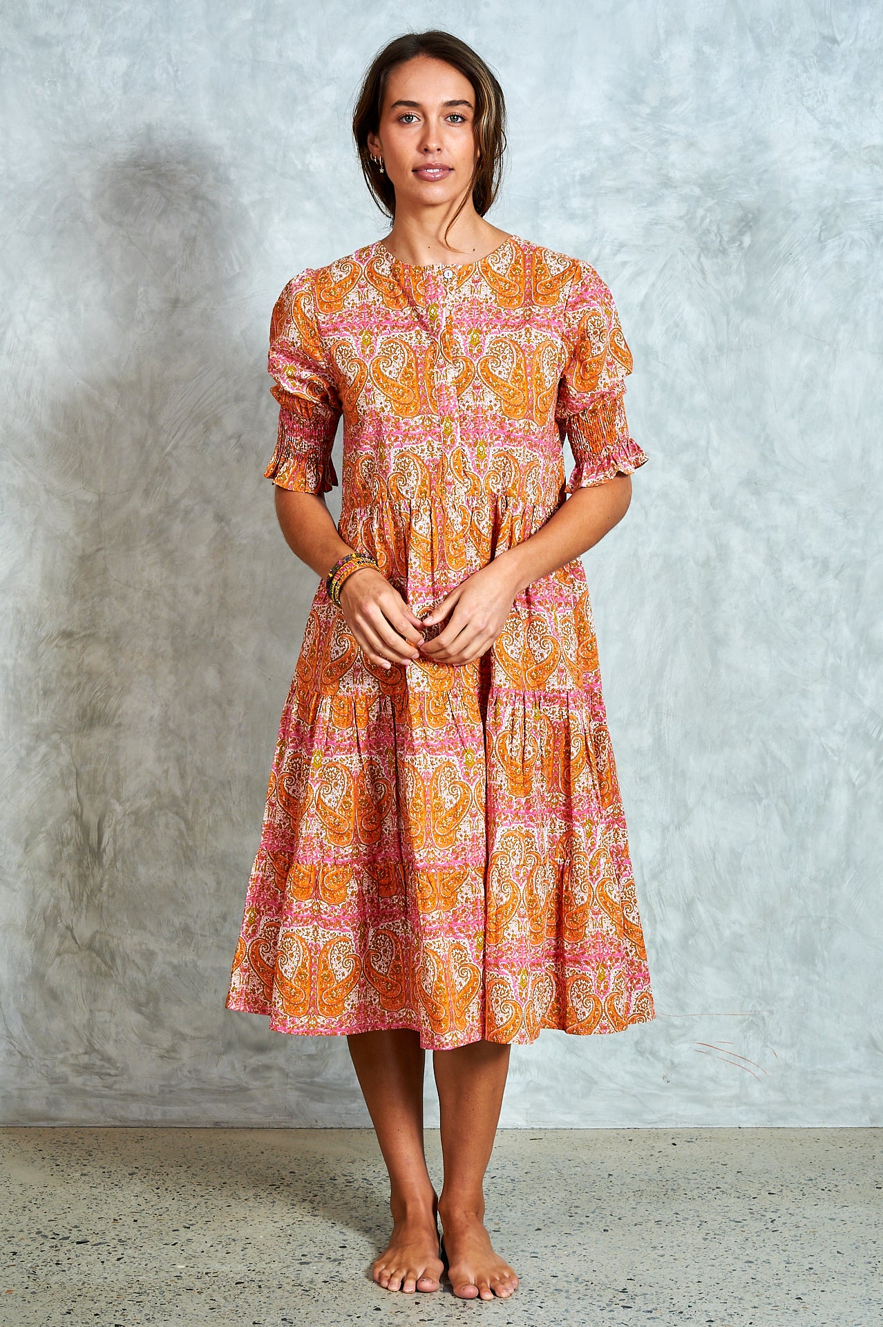 By popular demand, the much-loved Harriet now comes in a midi—meet Molly. A stunning hand block-printed cotton dress with a button-through bodice, tiered skirt, and softly puffed sleeves with shirred cuffs. Effortlessly versatile, Molly is perfect for everyday wear and easy to dress up for an evening out. Ethically made in India with love.
