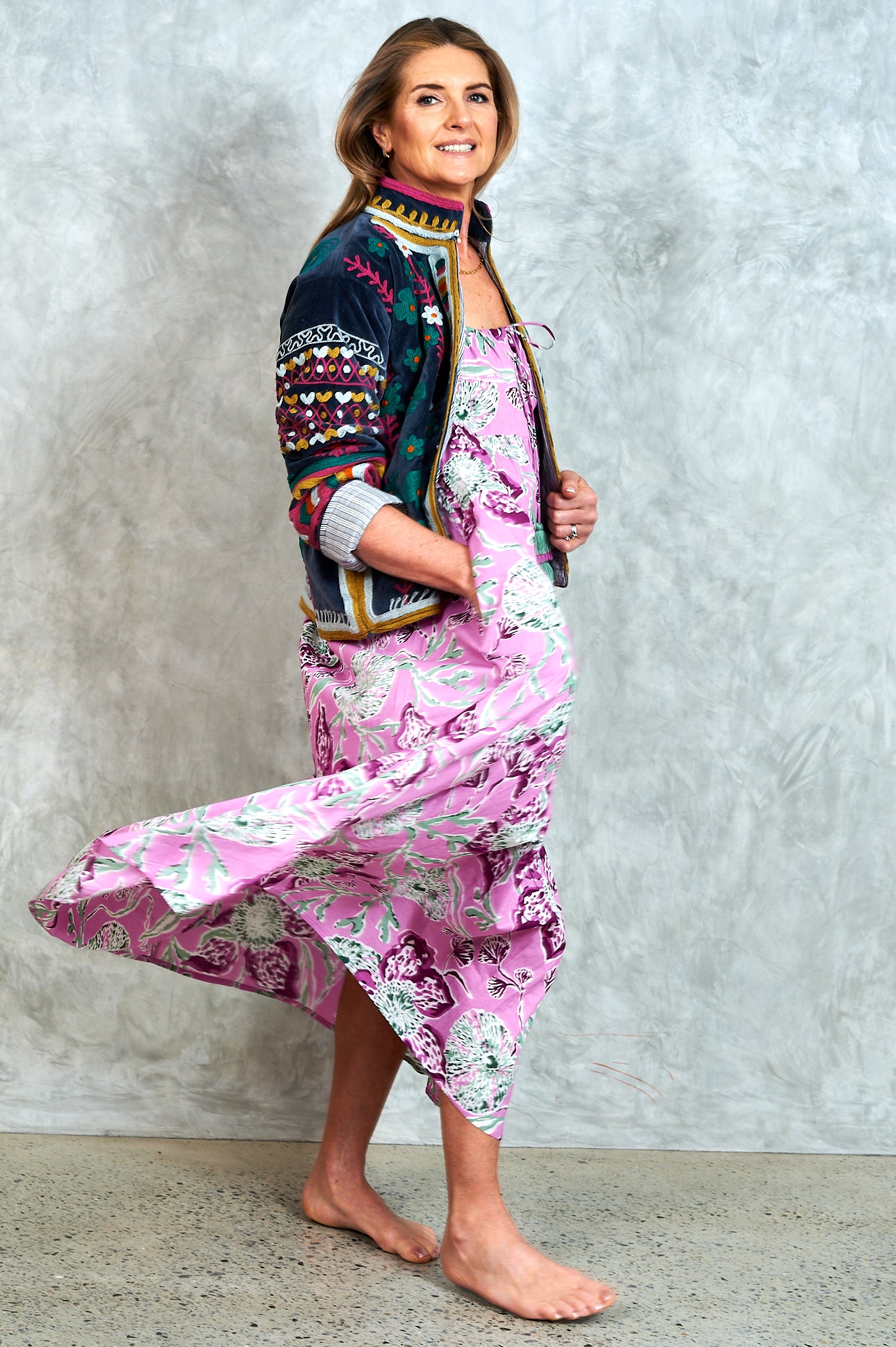 Made from plush cotton velvet and hand-embroidered with traditional Susani detailing, this piece is a beautiful celebration of artisan skill, colour, and texture. Throw it over a flowing dress for effortless bohemian glamour, or pair it with jeans and boots for an elevated everyday look.