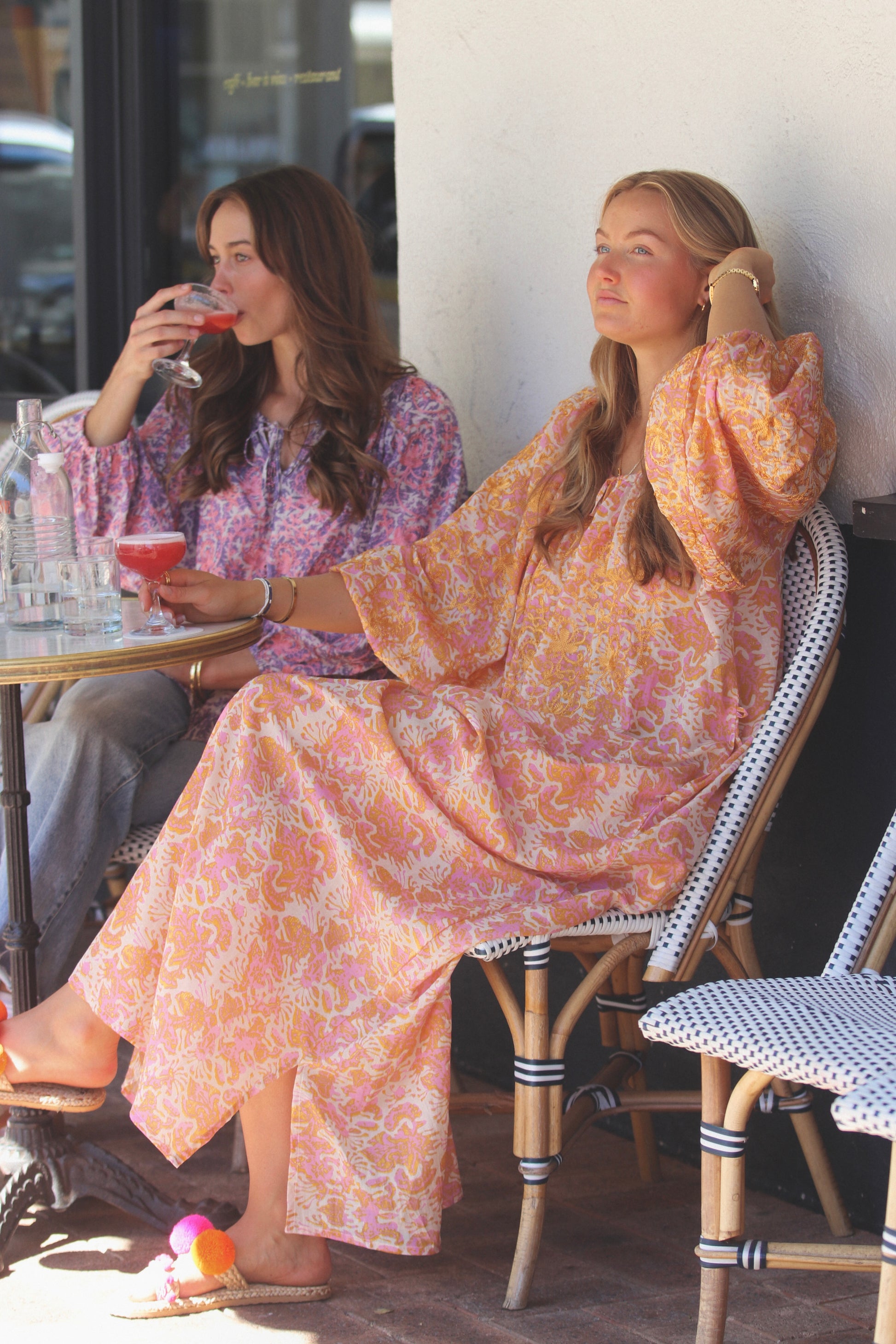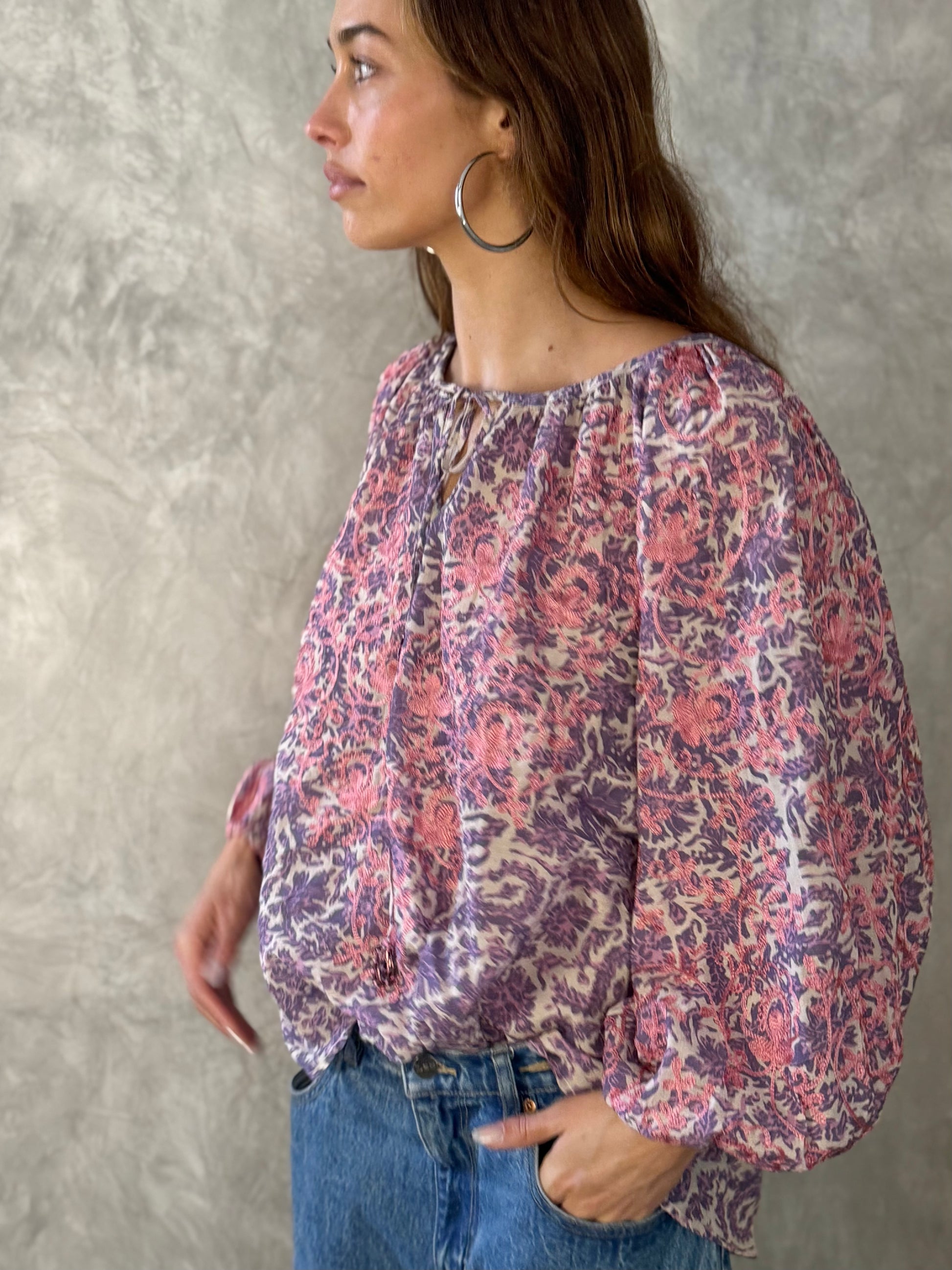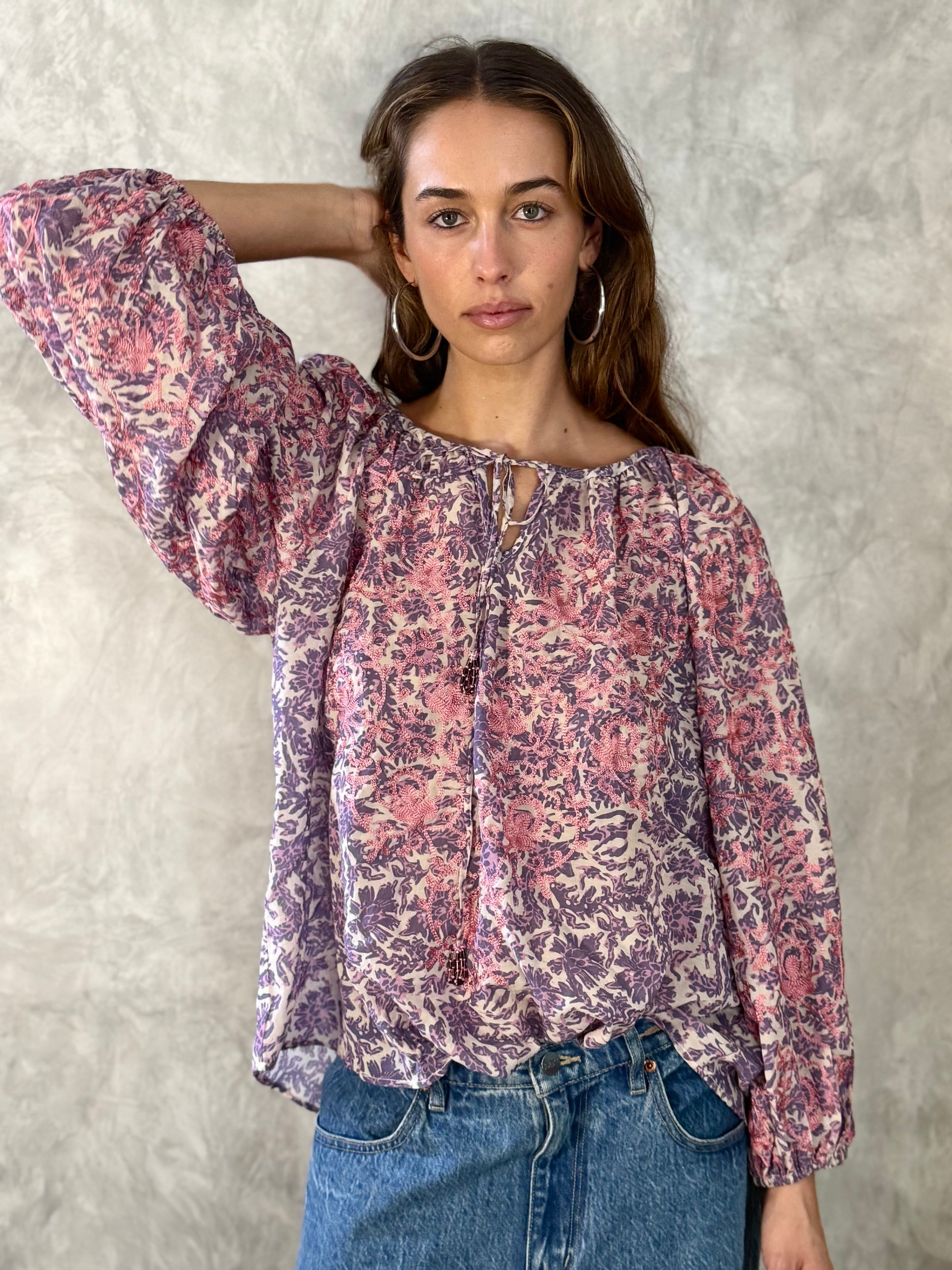The Viviana Top is this season’s must-have! This stunning hand-block printed sushi cotton voile top is embroidered with intricate florals, showcasing the incredible vibrancy of the dye and hand block printing. Designed for versatility, it features a soft drape, an adjustable neckline with a beaded tie detail, a chic throwback to ’70s.